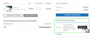A Kosár oldalon a jobb alsó sarokban a Beváltható kedvezmények szekcióban találod az Ingyen élményedhez szükséges kódot!